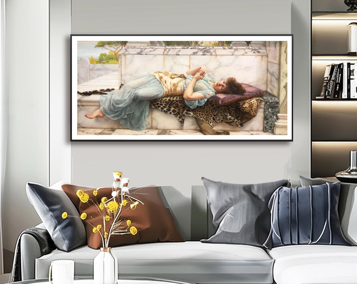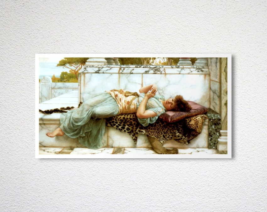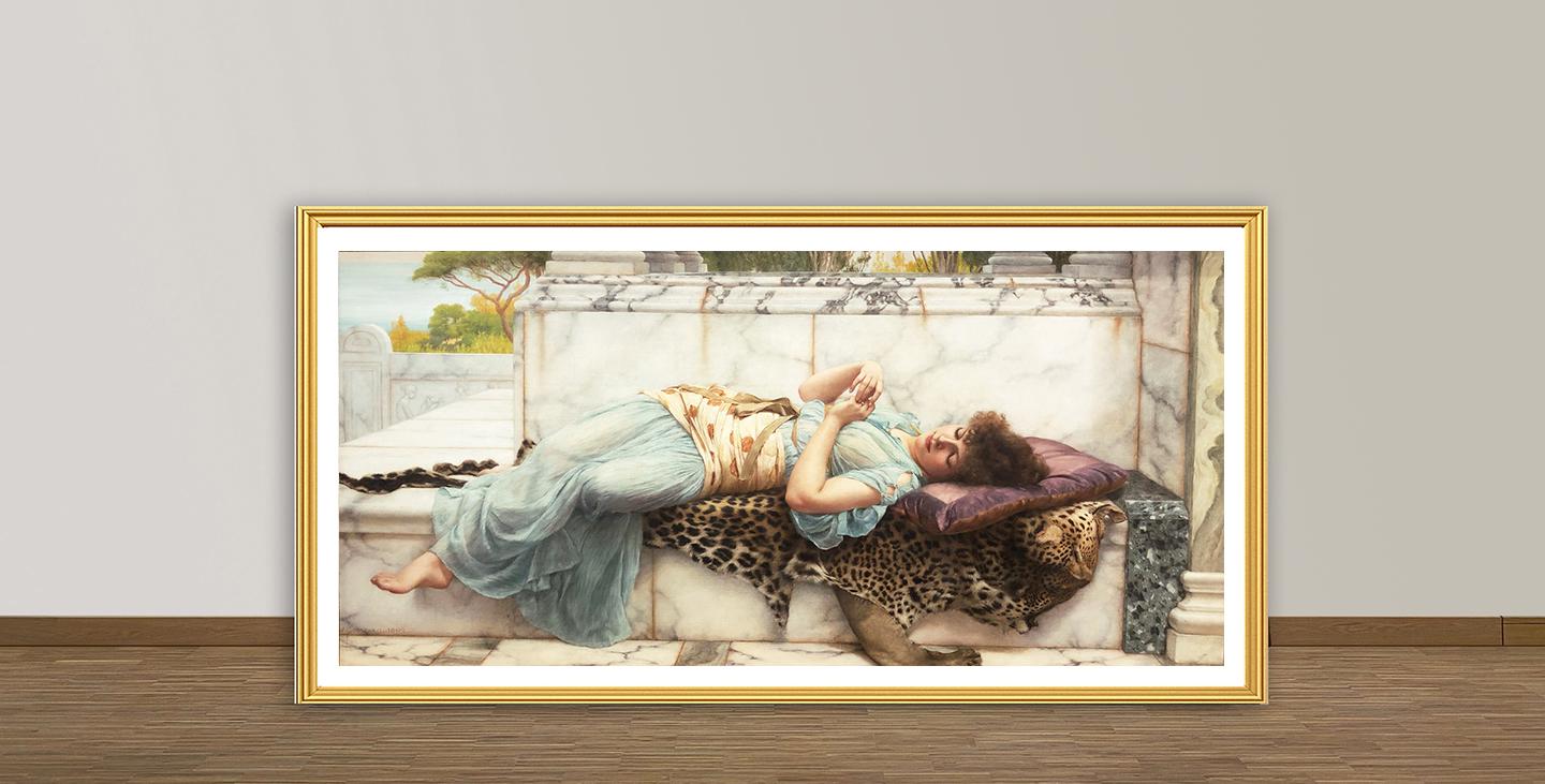 Printed on high quality paper, cotton canvas or adhesive sticker paper. A high quality reproduction of painting by John William Godward. Professional packaging for safe shipping. Natural white border will be added to the image for mounting and framing.
