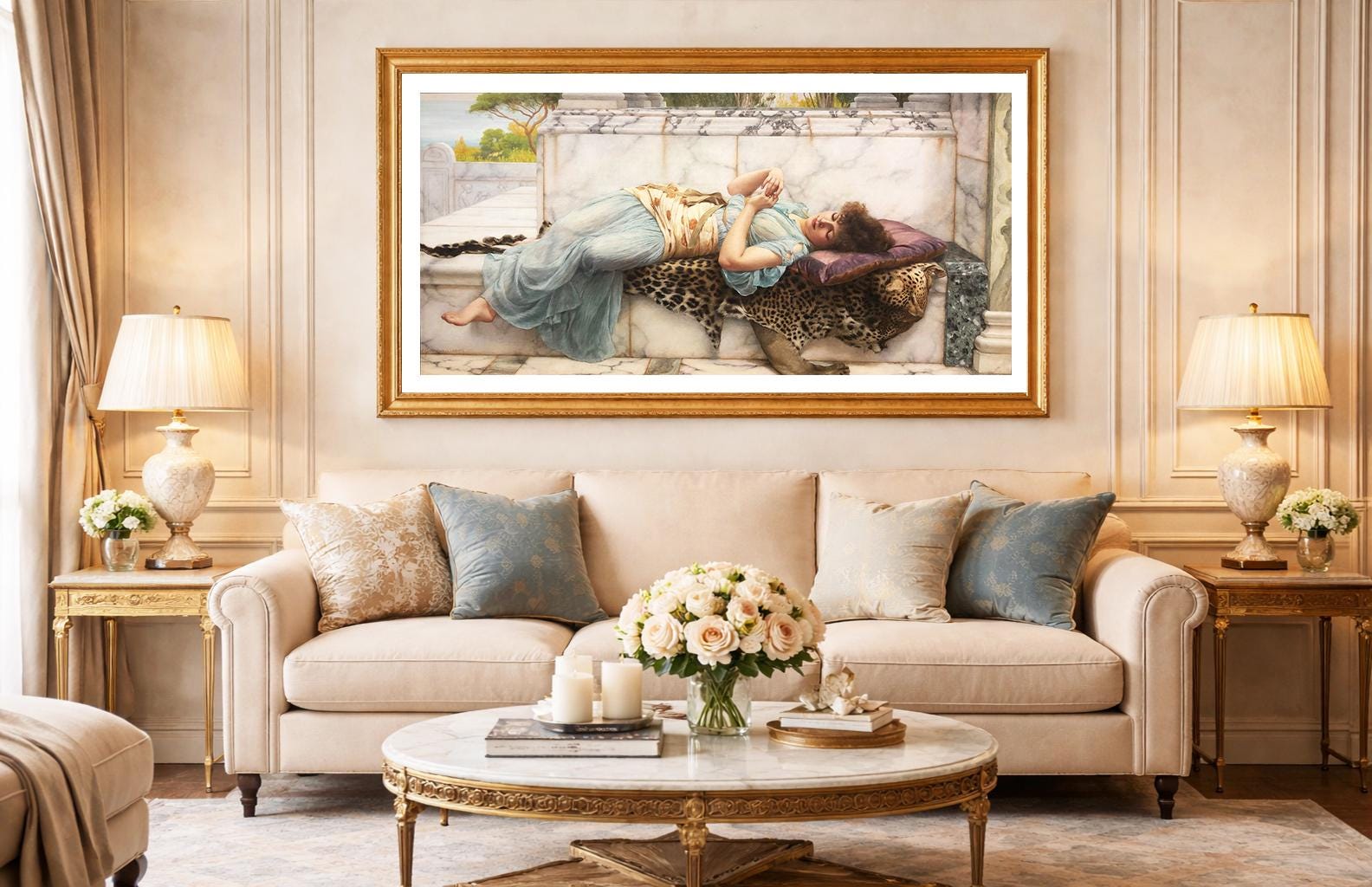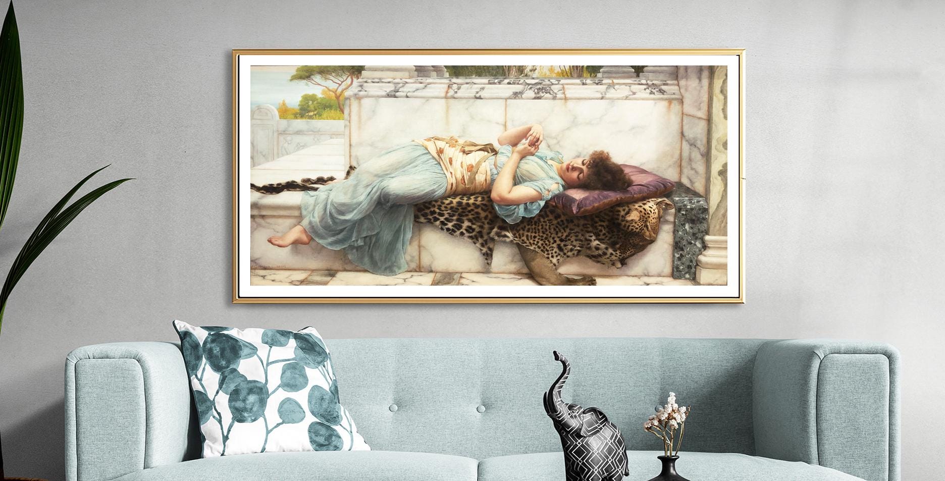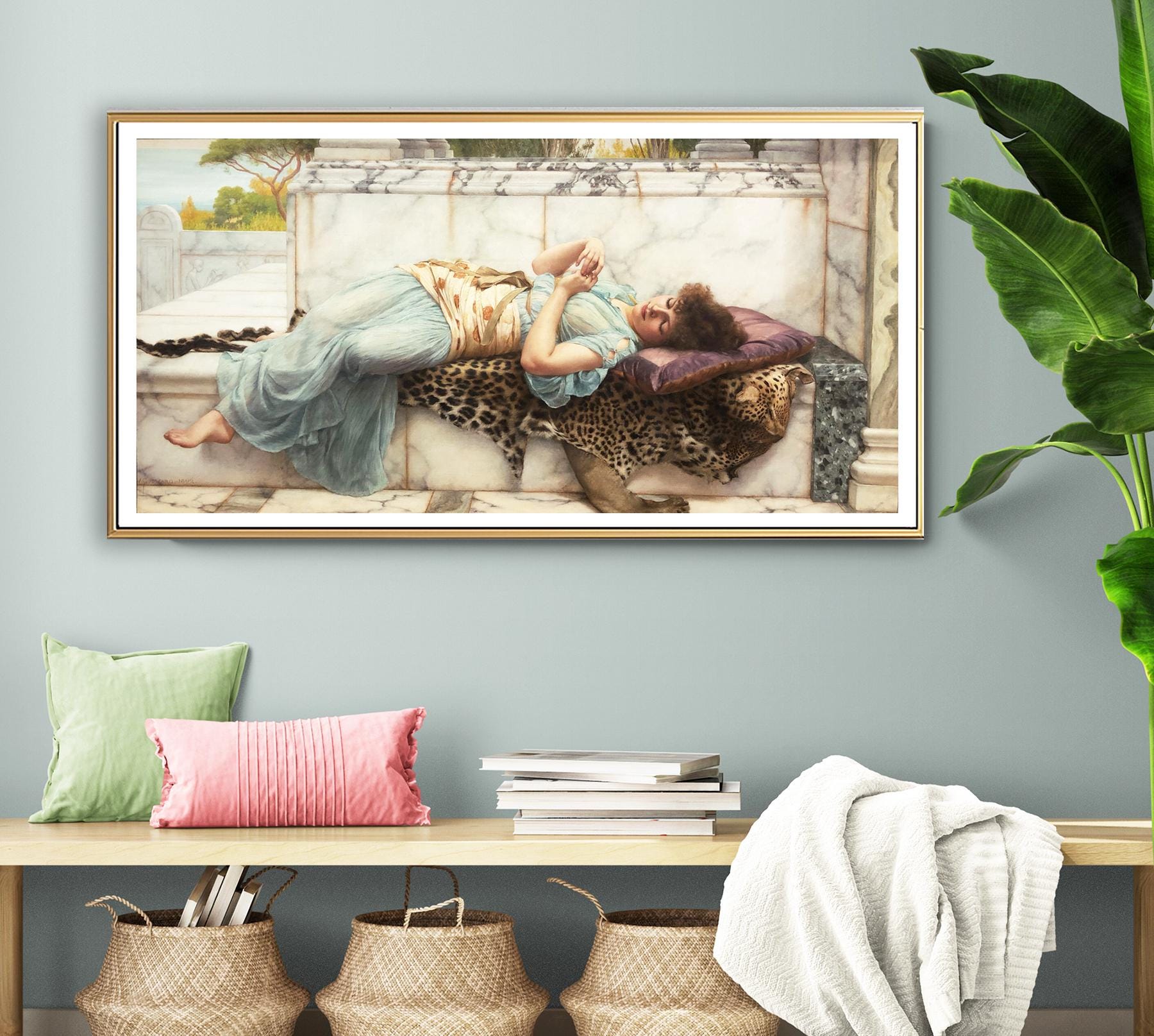 Printed on high quality paper, cotton canvas or adhesive sticker paper. A high quality reproduction of painting by John William Godward. Professional packaging for safe shipping. Natural white border will be added to the image for mounting and framing.