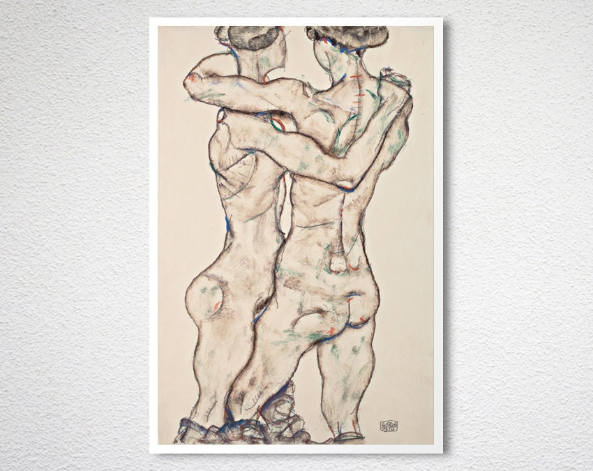 Naked Girls Embracing by Egon Schiele, Fine Art Print - Poster Paper, Canvas Print