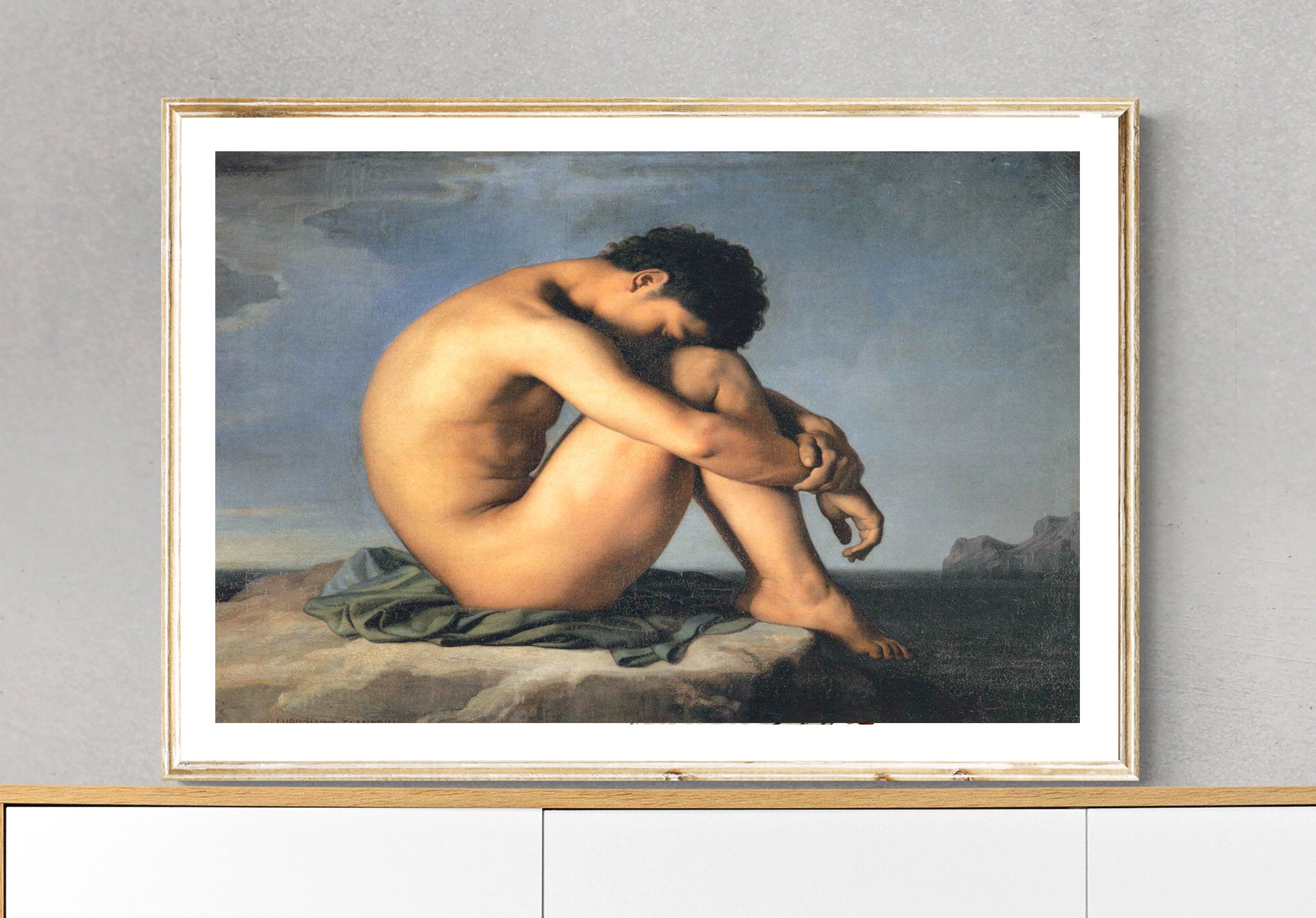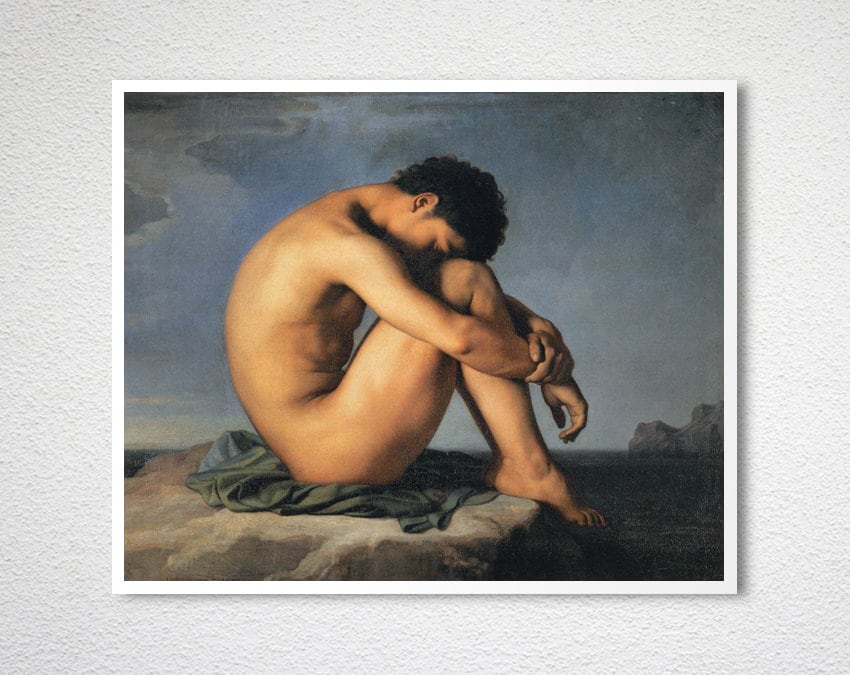 Nude Young Man Sitting by the Sea by Jean-Hippolyte Flandrin Fine Art Print - Poster Paper or Canvas Print / Gift Idea / Wall Decor