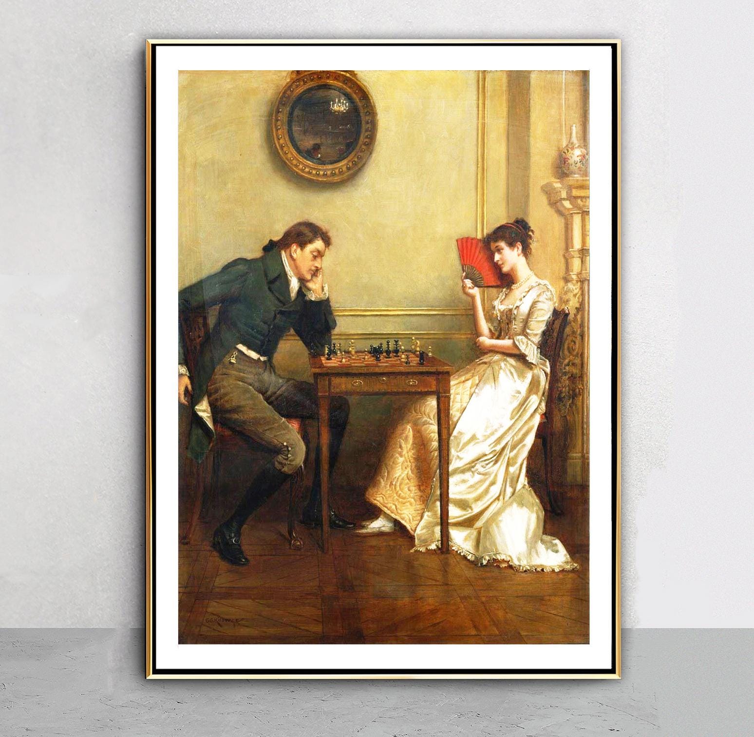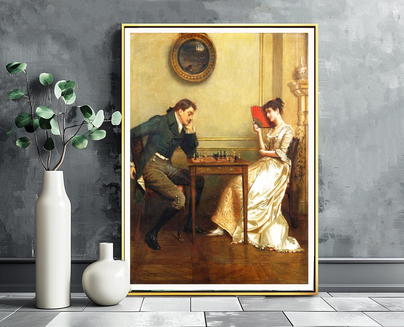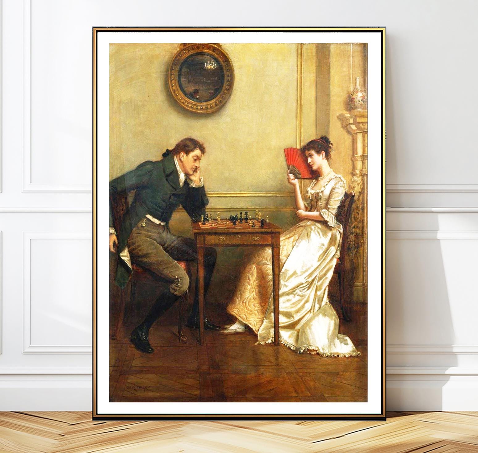 The Chess Players by George Goodwin Kilburne Fine Art Print - Poster Paper or Canvas Print / Gift Idea / Wall Decor