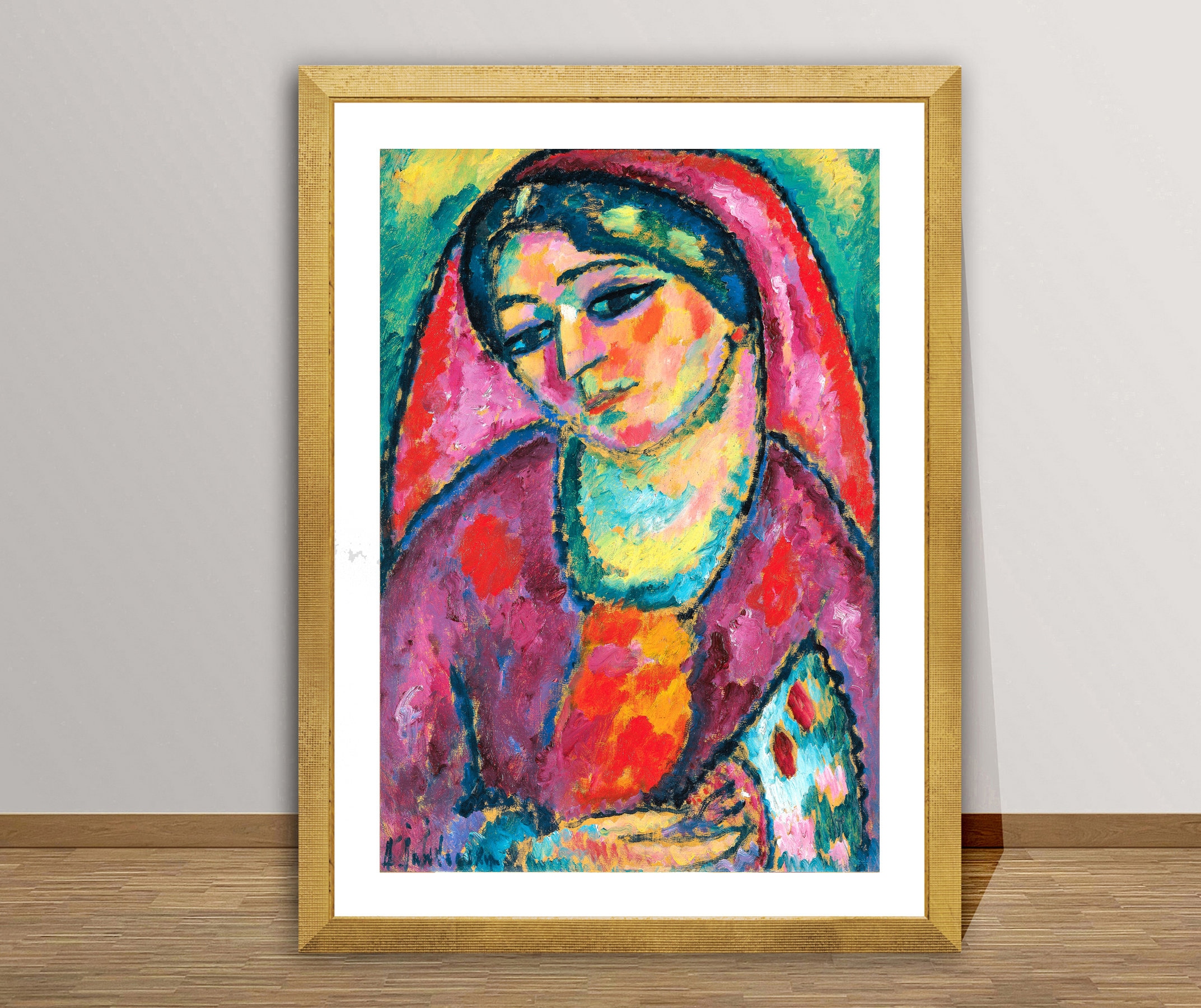 Printed on high quality paper, cotton canvas or adhesive sticker paper. A high quality reproduction of painting by Alexej von Jawlensky. Professional packaging for safe shipping. Natural white border will be added to the image for mounting and framing.