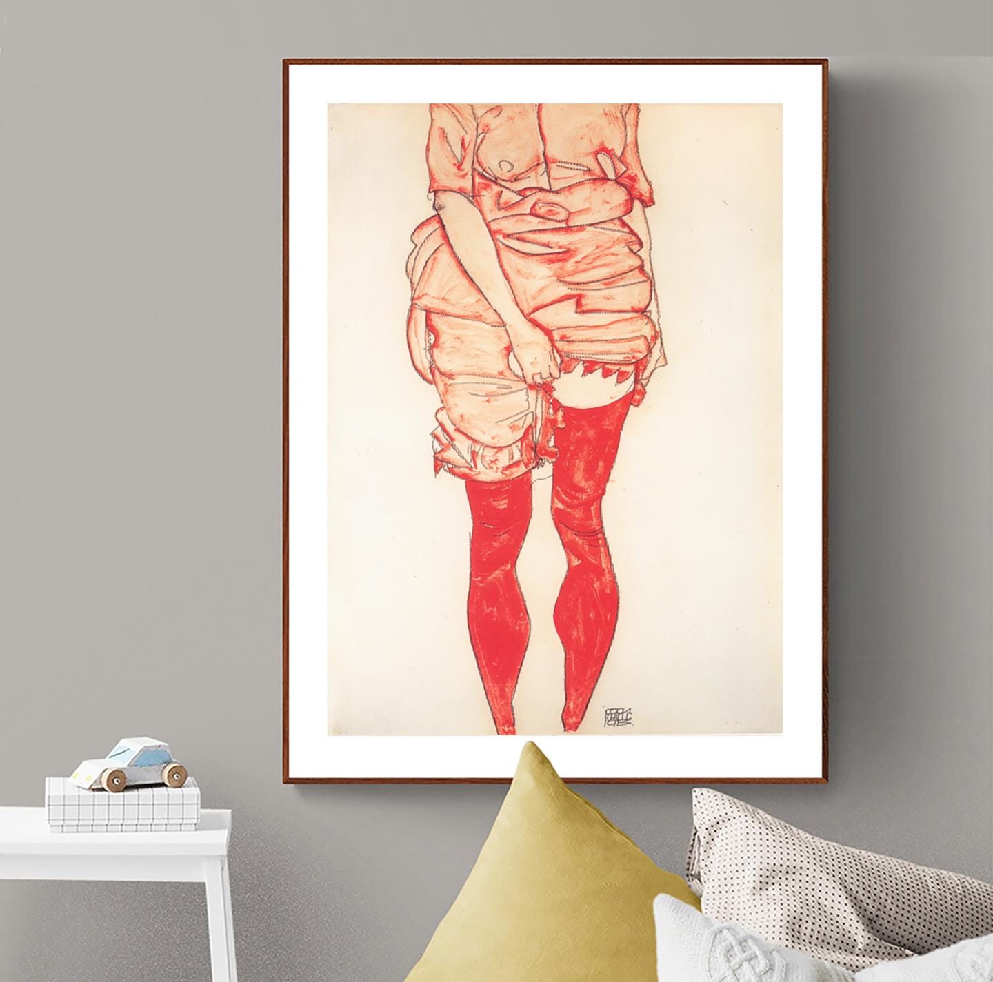 Standing Woman in Red (Frau in Rot Egon Schiele) Fine Art Print - Figurative Painting