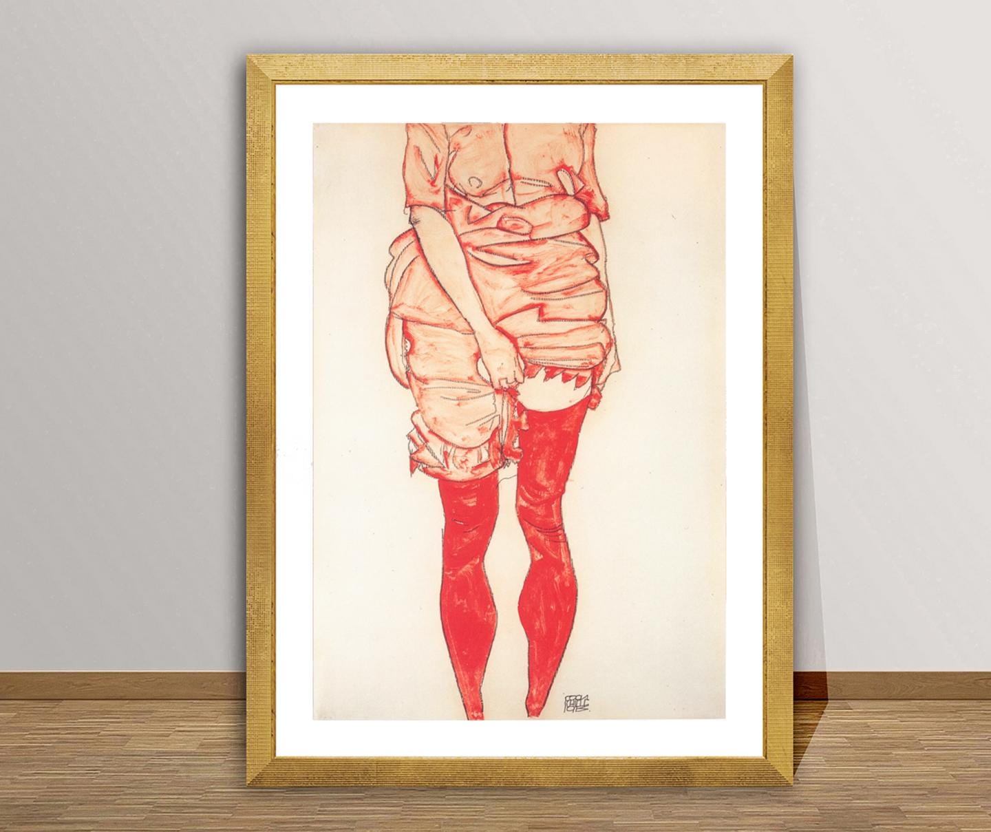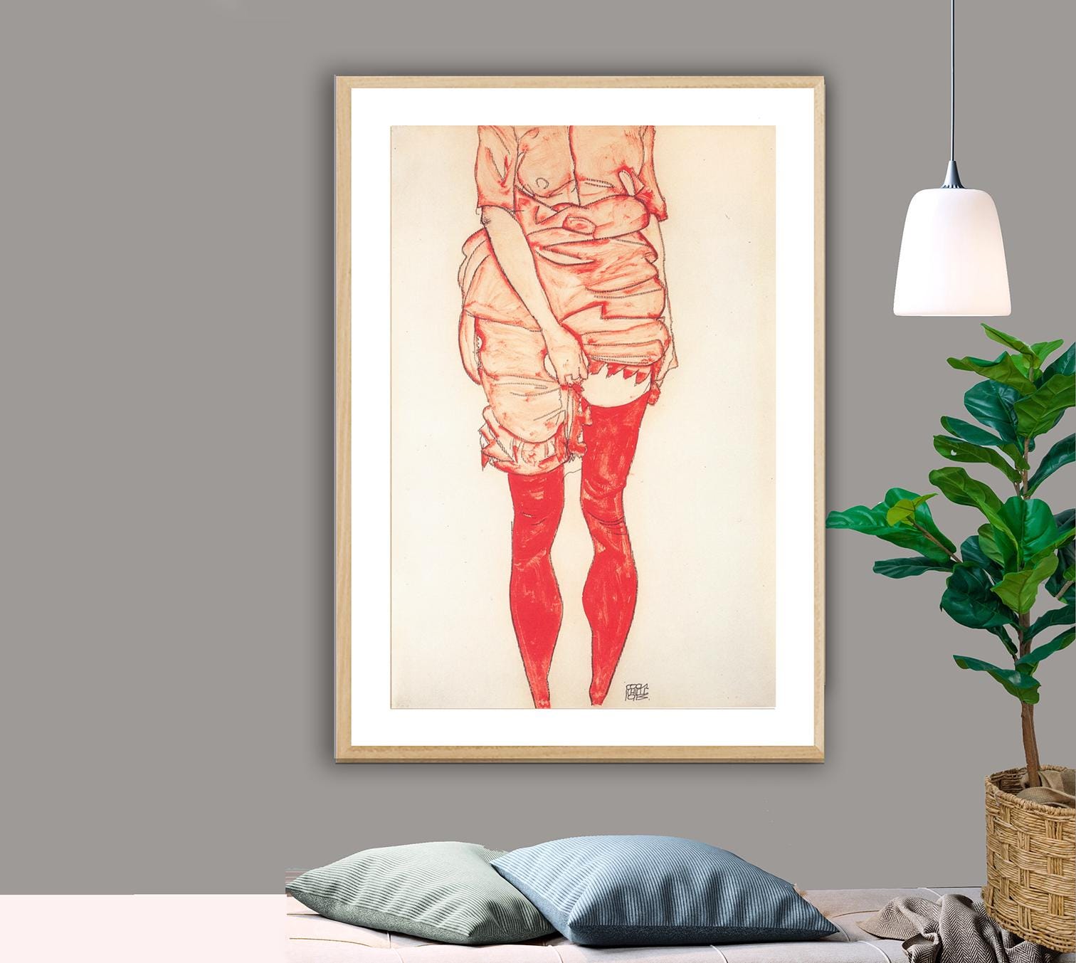Standing Woman in Red (Frau in Rot Egon Schiele) Fine Art Print - Poster Paper or Canvas Print / Gift Idea / Wall Decor