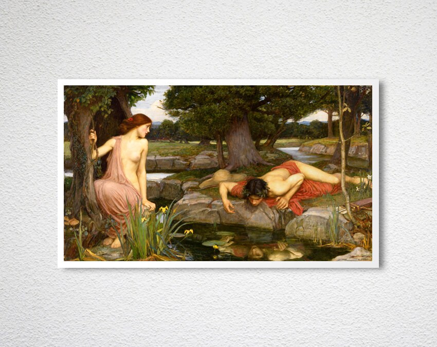Echo and Narcissus by John William Waterhouse Fine Art Print - Poster Paper or Canvas Print / Gift Idea / Wall Decor