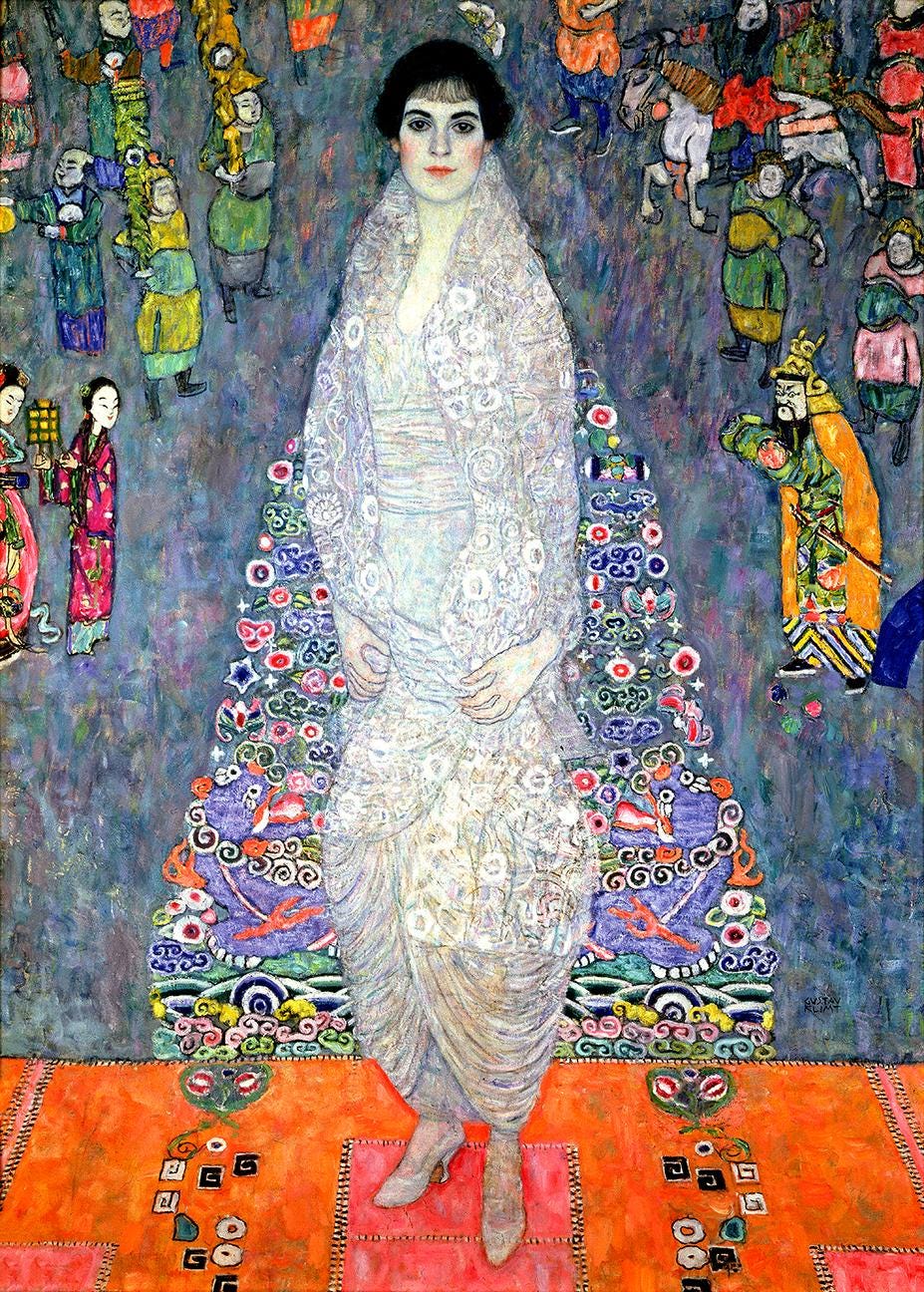 Gustav Klimt’s “Portrait of Elisabeth Lederer” was commissioned by Serena Lederer, one of Klimt’s closest friends and patrons, to immortalize her young daughter. Klimt created many sketches and portrayed Elisabeth as a quiet, introspective figure surrounded by elegant, lush ornament details, decorative patterns. It became one of his last major society portraits.