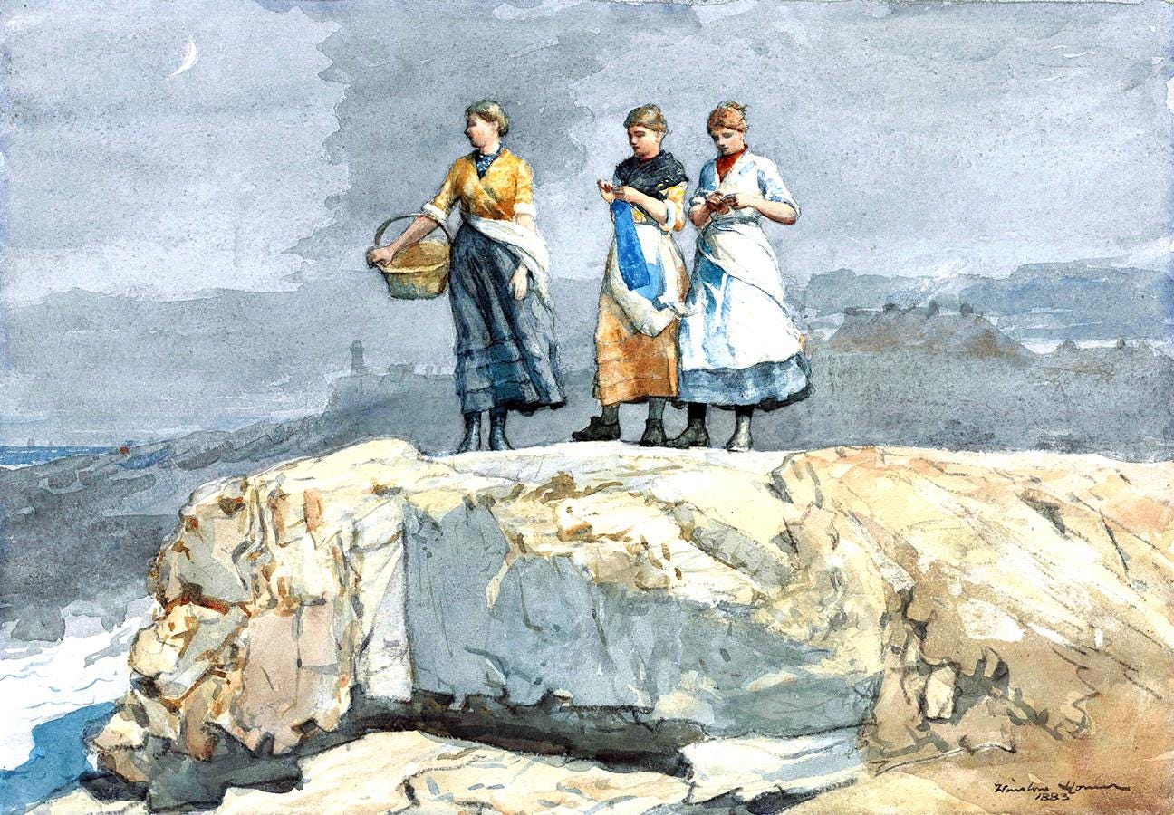 The composition centers on turbulent waters under a shifting sky, creating a sense of anticipation and uncertainty. The absence of the boats mentioned in the title adds a poetic layer: it invites viewers to imagine what has happened just beyond the frame, a narrative suspended in time. Homer’s masterful handling of light and atmosphere reflects his lifelong fascination with the power, danger, and beauty of the ocean.