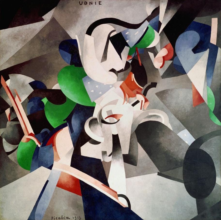 Udnie (Jeune fille américaine; The Dance) (1913) is widely considered his most famous painting. Created during his Cubist–Futurist phase, it’s a dynamic, abstract composition inspired by movement and modern life. The work became a key example of early abstraction in Paris and New York and helped cement Picabia’s reputation as a bold innovator.