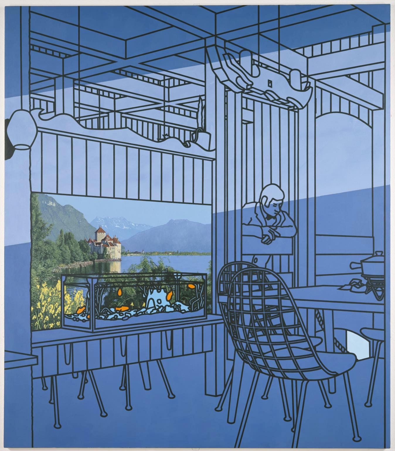 His work often looks deceptively simple but is carefully constructed, blending elements of European modernism (such as Juan Gris, Léger, and Magritte) with the visual language of commercial sign painting. Many of his paintings depict empty rooms, cafés, and everyday objects, creating a quiet, slightly melancholic atmosphere.